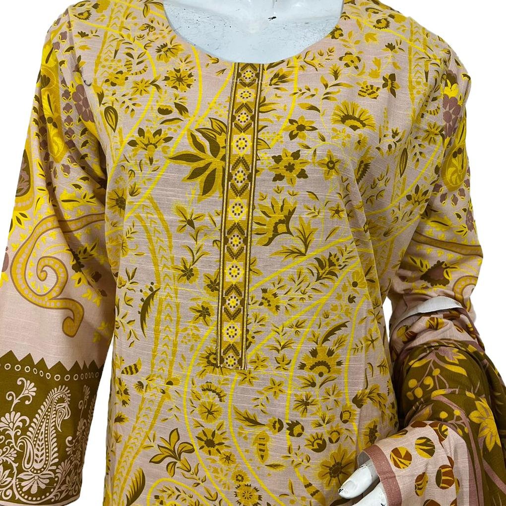 Introducing the Coral Reef Color Printed Khaddar 3pc Stitch Suit, a stylish and comfortable outfit for any occasion. This stunning suit features a trendy design neckline and printed sleeves, adding a touch of elegance to your overall look. The printed fabric is made from high-quality khaddar material, known for its softness and durability.