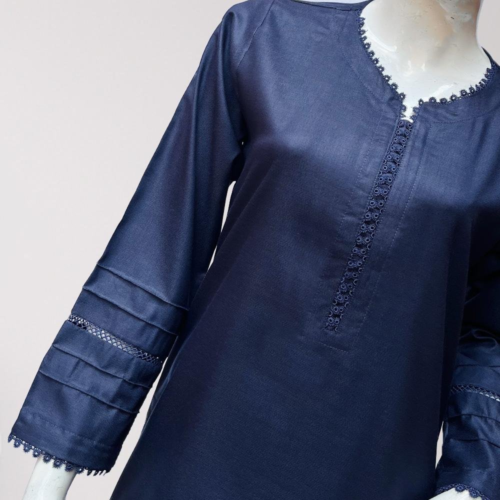 Introducing the Women’s Teal Blue Kurti Design, perfect for any season. This stylish kurti comes in a beautiful tealish blue color and is made from high-quality lawn fabric, with the option of winter fabric for cooler days.